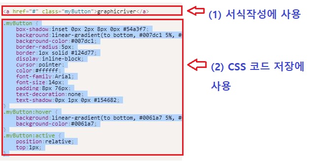 내가 만든 "myButton"을 생성하는 코드를 CSS에 넣은 후에 글에 편리하게 사용하게 위해 서식에 넣어보도로 ㄱ하겠습니다.
