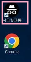 이렇게 아이콘까지 변경하고 나면 일반모드 크롬과 구별하여 실행할 수 있는 시크릿모드 크롬의 아이콘이 생성됩니다.