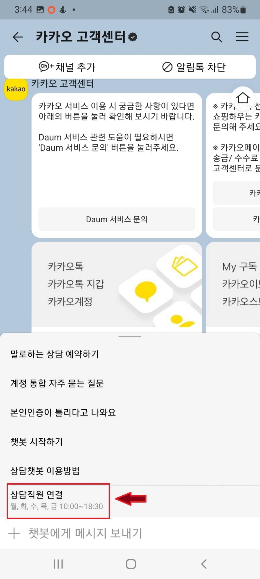 카카오톡을 통해 고객센터에 연결하는 방법은