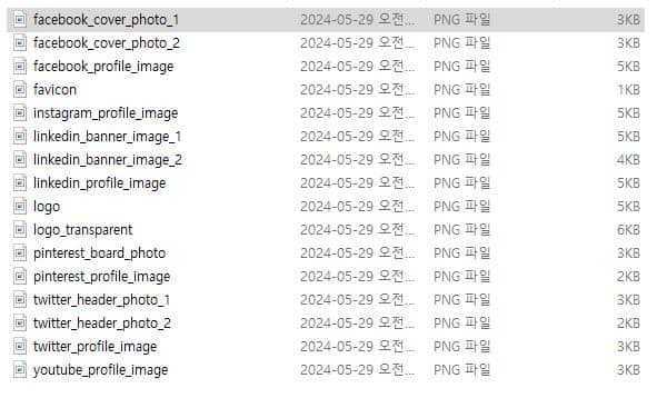 가입할 때 사용한 이메일에 아래와 같은 압축화일이 있고, 압축화일을 풀어보면 다양한 사이즈의 이미지 파일이 있습니다.