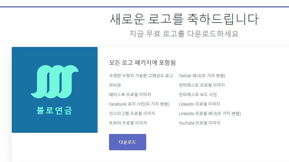 8. 최종적으로 로고가 생성되면 다운로드할 수 있는 페이지로 넘어갑니다.