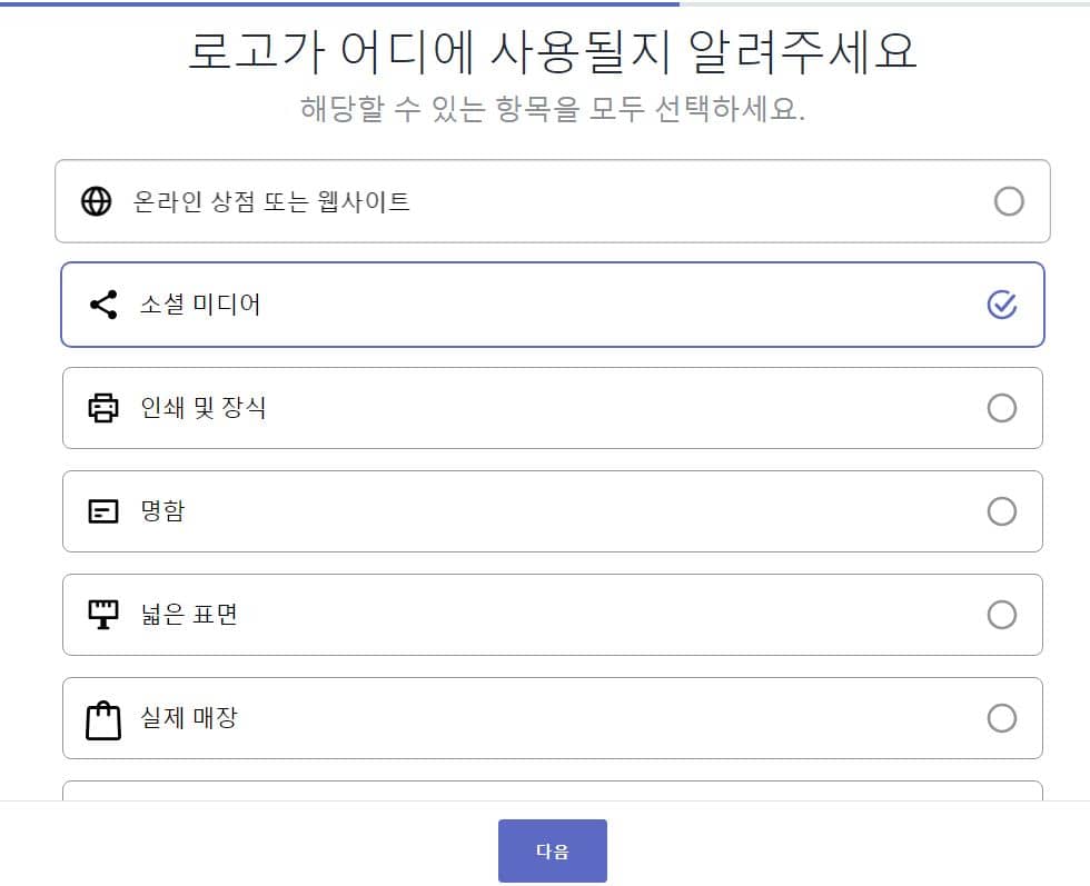 주로 블로그에 사용되는 것이라면 첫번째 온라인 상점 또는 웹사이트 또는 두번째 소셜 미디어를 선택해 주시면 됩니다.